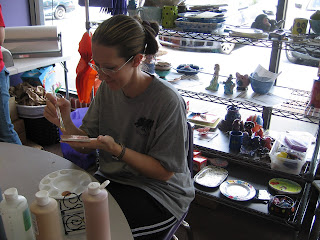 My friend Suk working on painting her coasters. This was her first time at the pottery place. We had a blast!